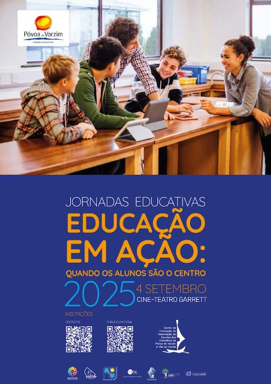O Município da Póvoa de Varzim, numa parceria com o Centro de Formação dos AE da PV/VC e os/as AE/ES do concelho, vai levar a efeito, no próximo dia 4 de setembro, no Cine Teatro Garrett, a 7ª Edição das JORNADAS EDUCATIVAS, este ano alusiva ao tema “EDUCAÇÃO EM AÇÃO: QUANDO OS ALUNOS SÃO O CENTRO”.